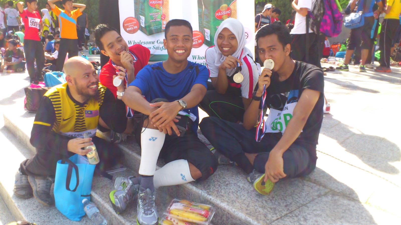katanya setiap sorang 3km, tapi aku rasa macam tak sampai 3km je aku lari sebab aku tengok jam dalam 15 minit je.